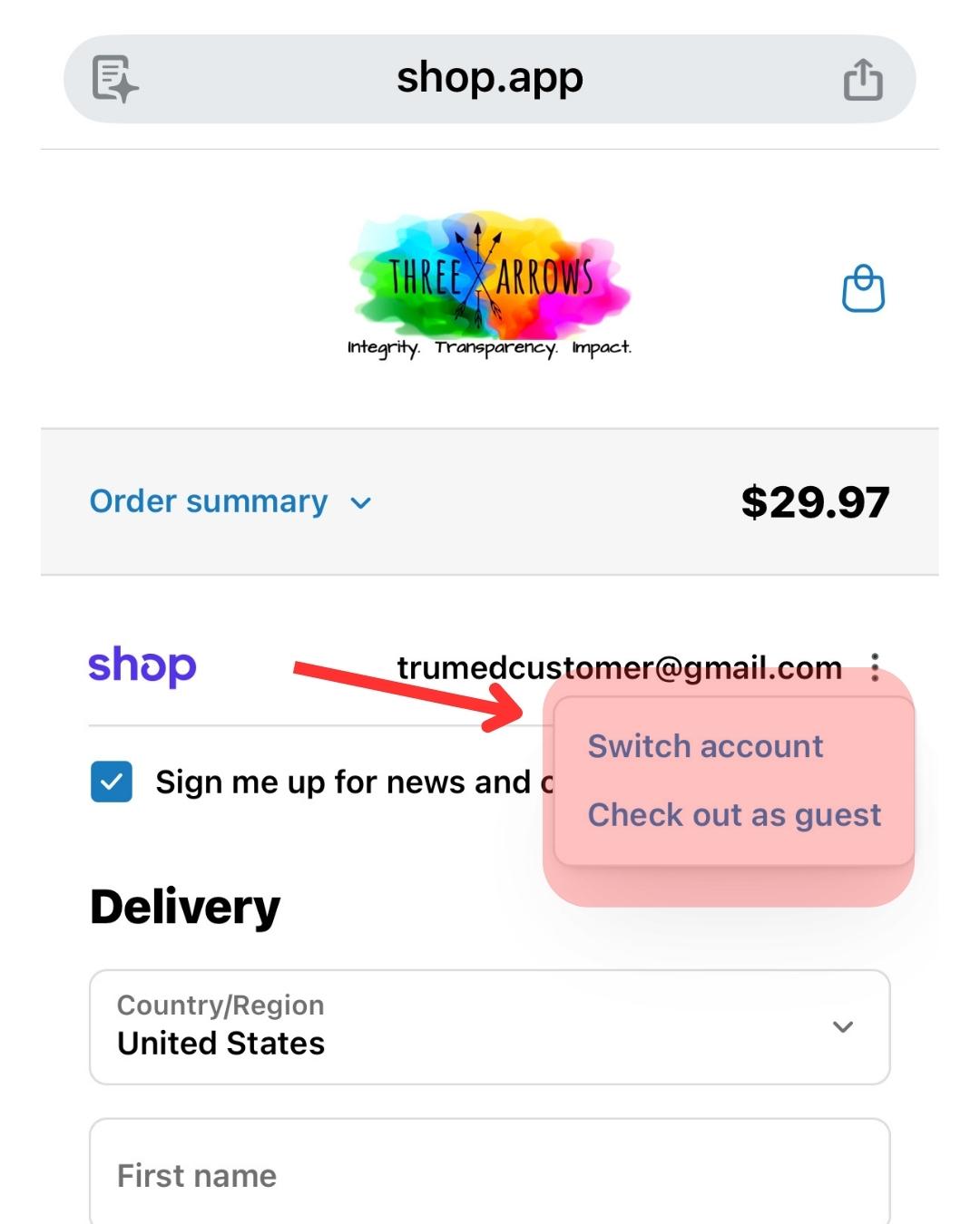 Note: if you are a Shop Pay customer, you may have to check out as a guest